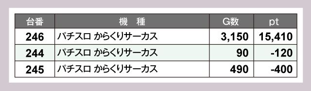 『パチスロ からくりサーカス』と『いざ!番長』からは、それぞれ1万ptオーバーの圧倒的優秀台が飛びだした。