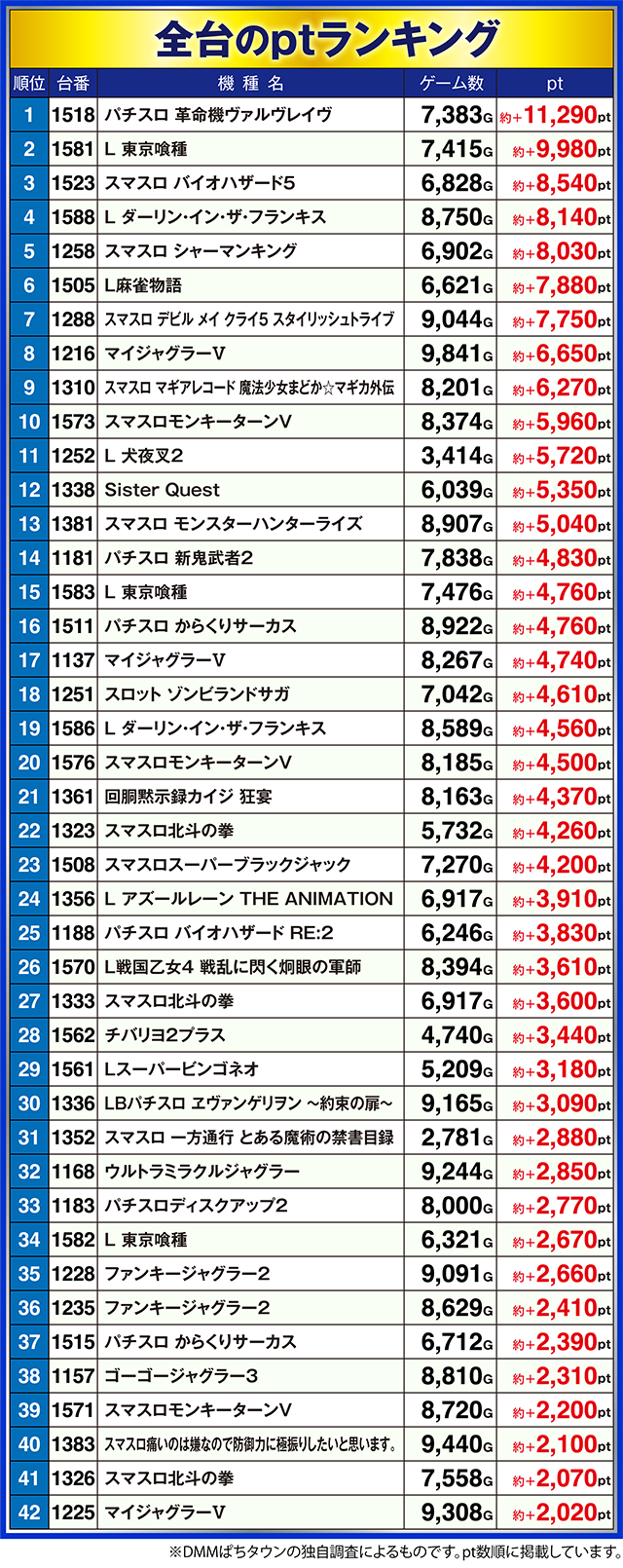 20スロ全台のptランキング