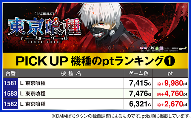 「L 東京喰種」の1581番台も約+10,000ptクラスとなった。