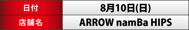 8月1日に再来を迎えた以来、ハイペースで「ARROW THE REAL取材」が継続している「ARROW namBa HIPS」。今回は同月内4回目、ヘラヘラ三銃士 まりなが同店を訪れていた。