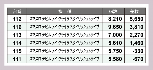 その他では『スマスロ デビル メイ クライ5 スタイリッシュトライブ』が高勝率&+5,700枚弱の台をカウントできた。