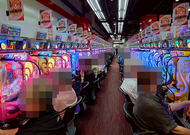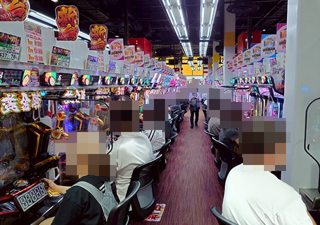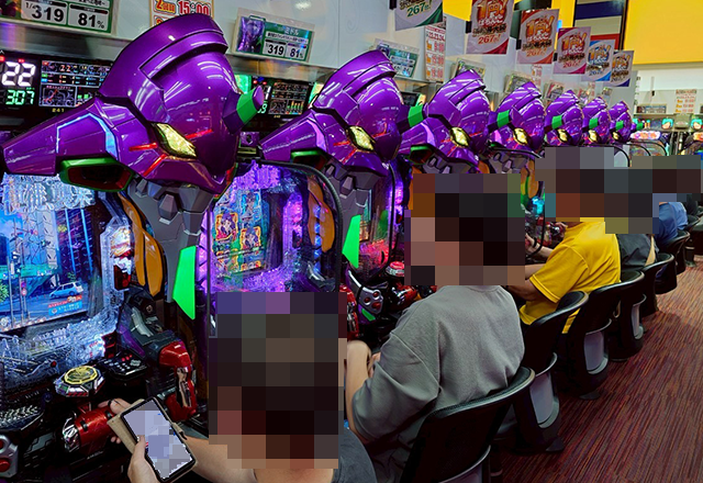 パチンコをみると、「新世紀エヴァンゲリオン〜未来への咆哮〜」や「e牙狼12黄金騎士極限」などが満席かつ盛況。