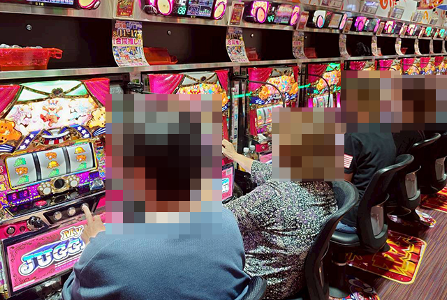 「アイムジャグラーEX」や「新ハナビ」にも楽しそうに過ごしている姿が並んでおり、にぎわいが感じられた。