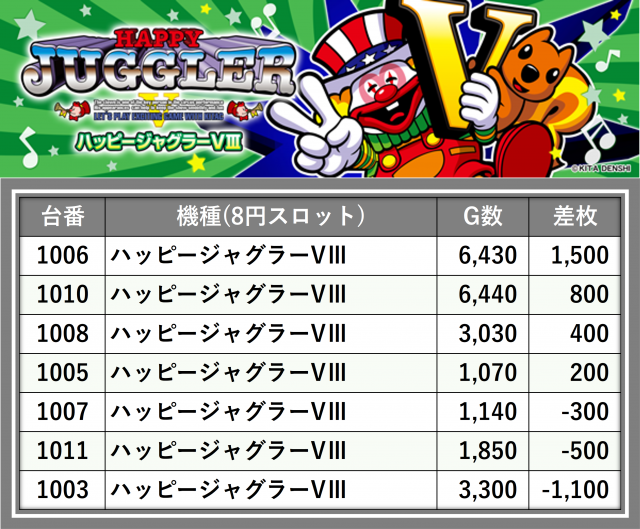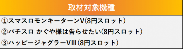 厳選された取材対象機種をはじめ、その他スロット全体から好記録が飛び出した!プレイヤーが楽しんだ1日を下記データにて振り返ってみて欲しい。