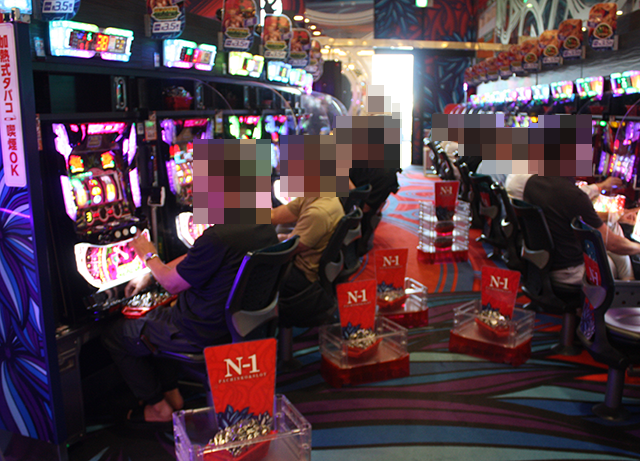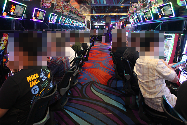 8月2日の店内では、パチンコとパチスロの両方がにぎわっていた。