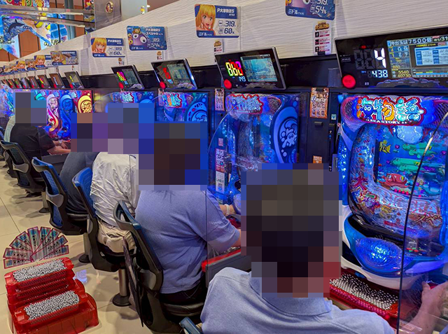 「P大海物語5スペシャル」でも持ち玉で遊技をおこなう姿が多く、にぎわっていた。