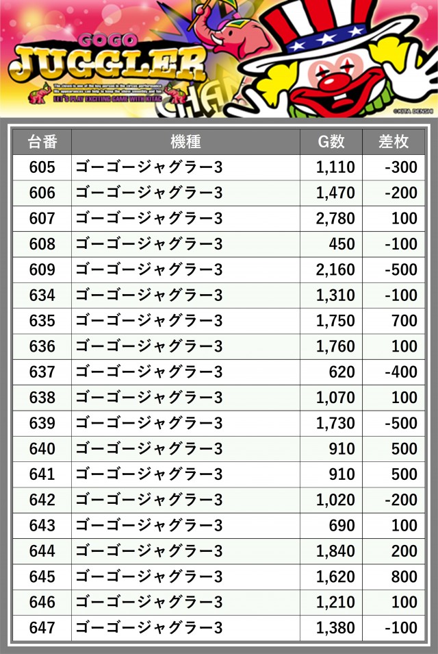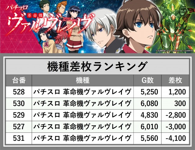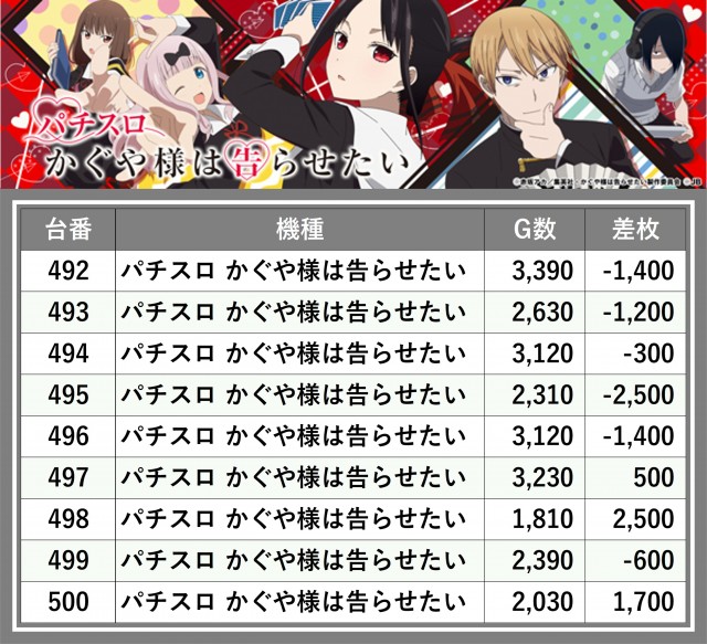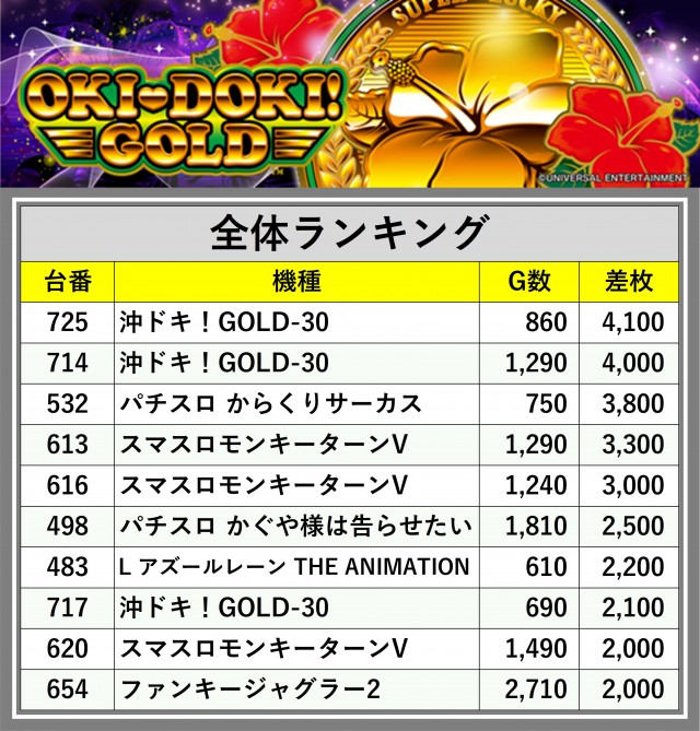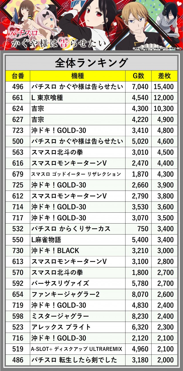 ※差枚数順に掲載しています