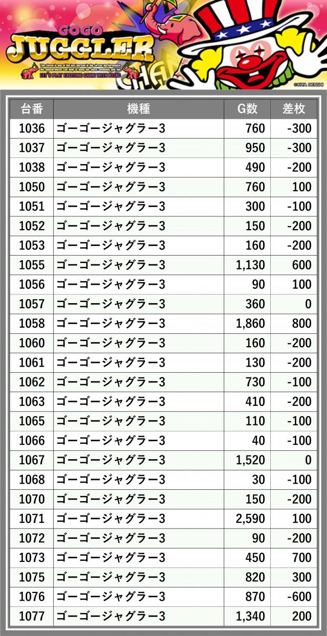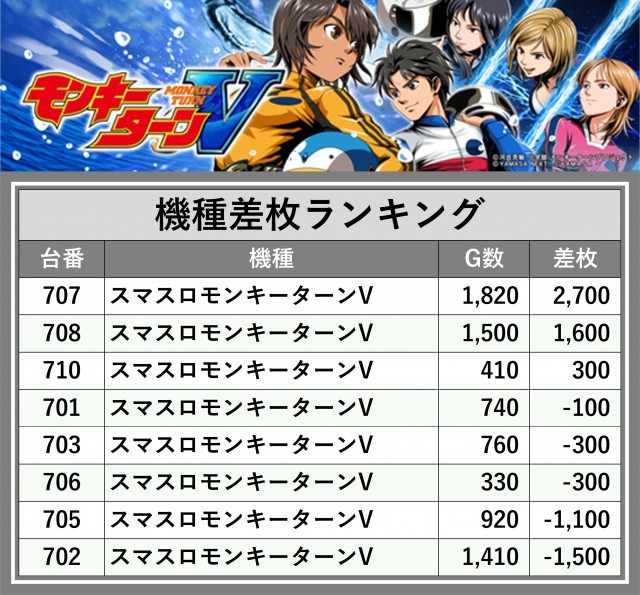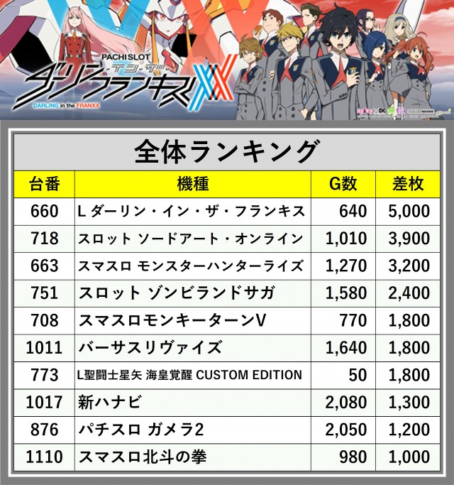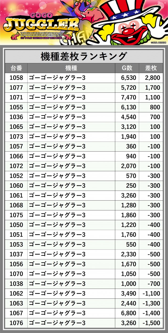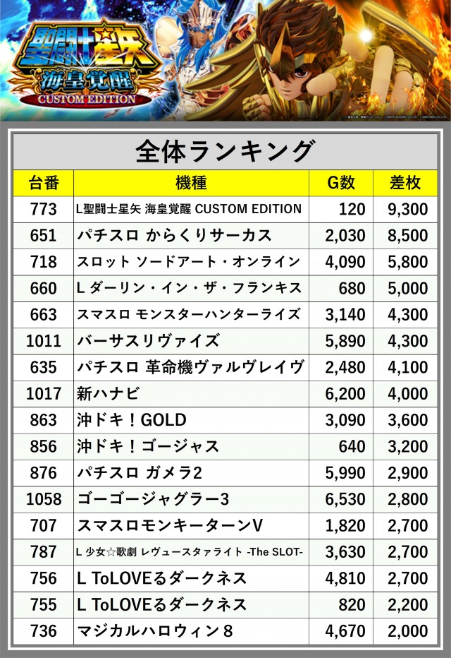 ※差枚数順に掲載しています