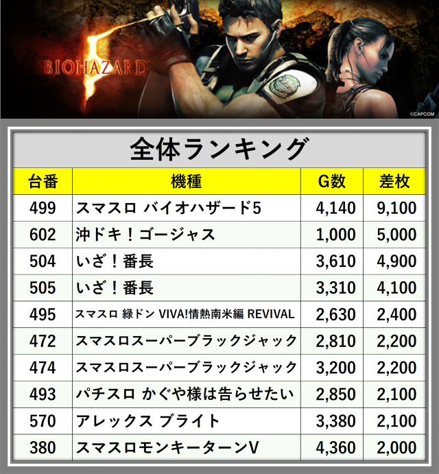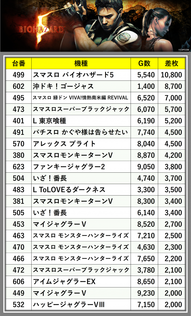 厳選された取材対象機種をはじめ、その他スロット全体から好記録が飛び出した!プレイヤーが楽しんだ1日を下記データにて振り返ってみて欲しい。