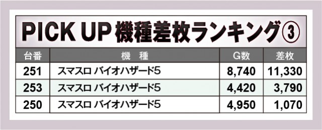 ※差枚数順に掲載しています。