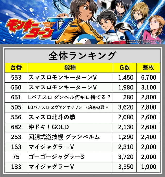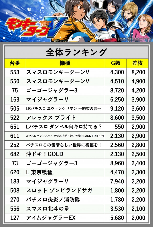 ※差枚数順に掲載しています
