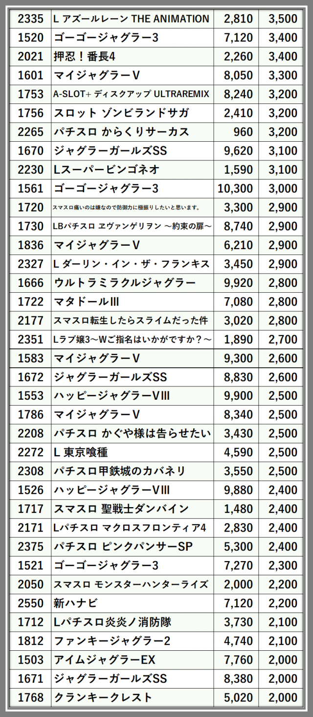 厳選された取材対象機種をはじめ、その他スロット全体から好記録が飛び出した!プレイヤーが楽しんだ1日を下記データにて振り返ってみて欲しい。