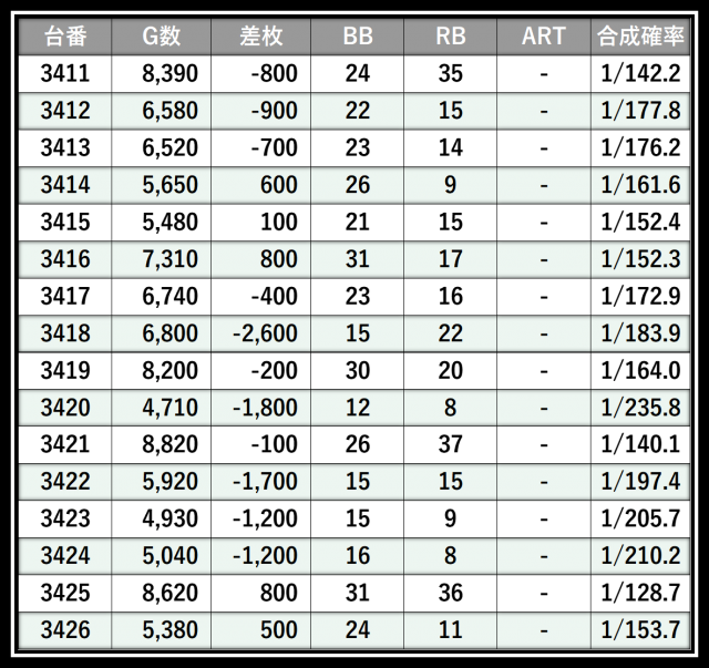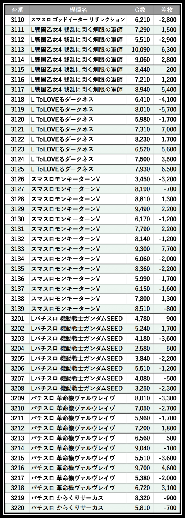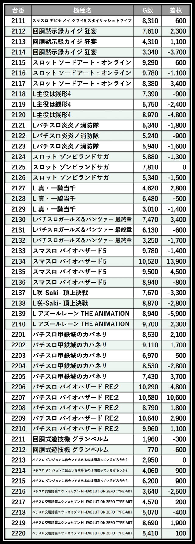 その結果の中から、ぱちタウンが注目すべきポイントを厳選してユーザーにお届け!プレイヤーが楽しんだ一日を下記データにて振り返ってみて欲しい。