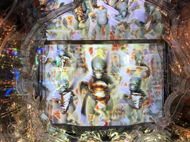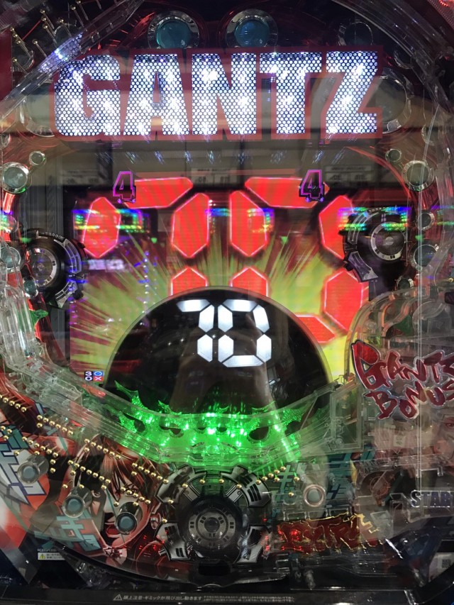 ただ、 どちらも座り続けるほどではないと判断。マダオは『スーパー海物語IN沖縄4 桜バージョン』、場内は『ぱちんこCR真・北斗無双』を触った後、『GANTZ』に移動します。