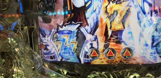 「朝一は50人ほどの並び。新台『牙狼翔』は導入週ということで大人気。自分も台を確保してスタートするも、回転率がイマイチ。他の台もチェックしてみると、前回ほどではないにしろボーダーは超えていそうな台が多数だったので、これは後からでも打てると思い、『沖海4桜バージョン』を打ってみると投資2Kで初当り」