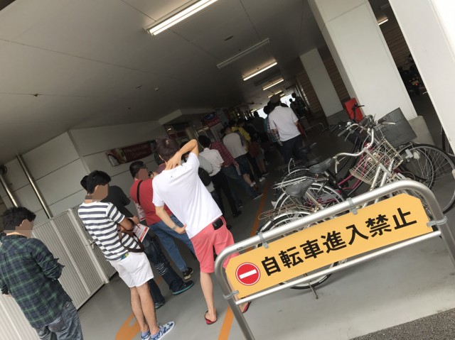 この日の並びは50人強。皆さんの狙いは新台の『CR牙狼GOLDSTORM翔』なんでしょうか。