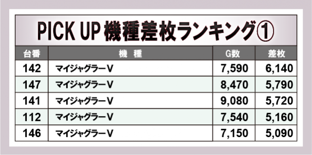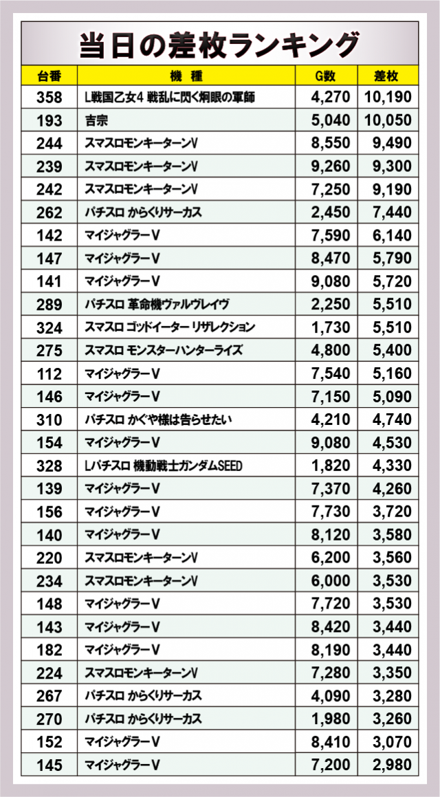 ※差枚数順に掲載しています。