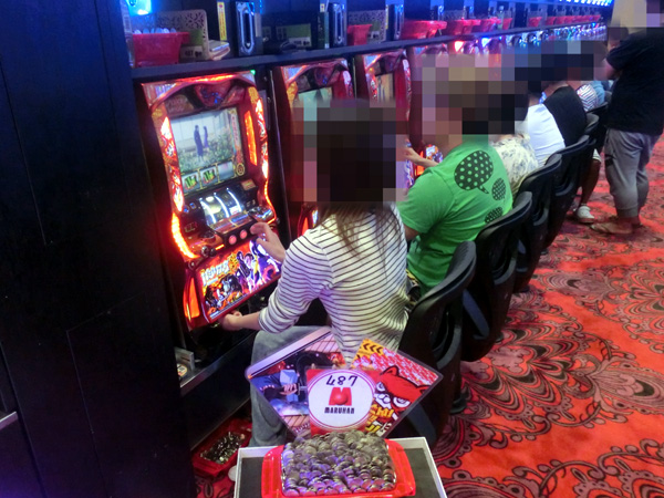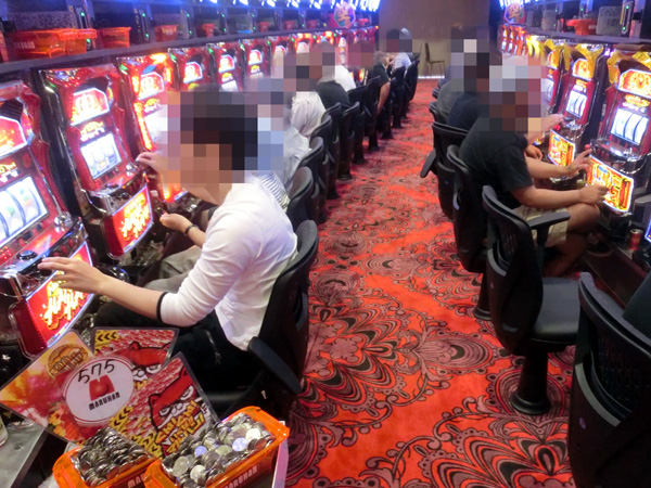 機種ラインナップが多彩な5円パチスロ。プレイヤーの表情は明るく、充実した時間を過ごせている様子だった。
