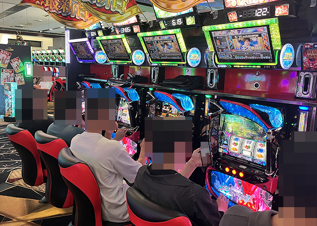 多くの場所に笑顔が広がっており、パチスロ全体が華やかな雰囲気となっていた。