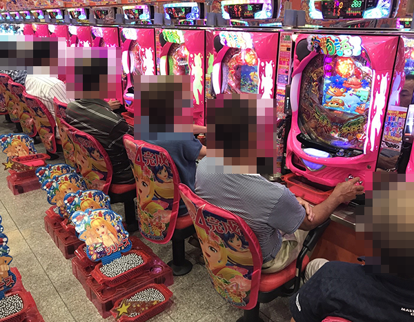 15時頃の4円パチンコをみると、海物語シリーズと「CR牙狼GOLDSTORM翔」が大人気。稼働率の高さにくわえ、見事なパフォーマンスを披露するプレイヤーも多かった。