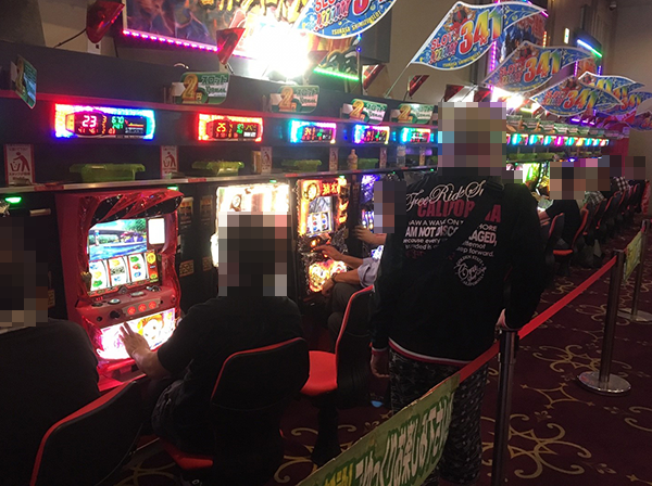 20円パチスロにおいて、とくに盛り上がっていたのが「沖ドキ!」と「押忍!番長3」。鮮やかな光景と明るい表情からは、満足度の高さもうかがえた。