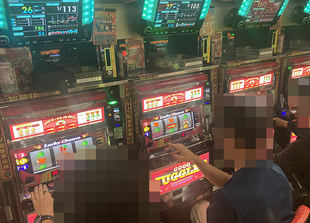 「マイジャグラーⅤ」もにぎわいが大きく、ボーナス回数が20回を超えている台も多い。