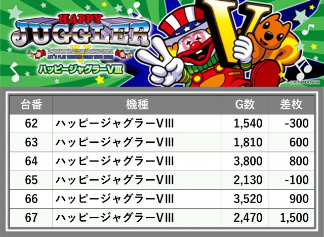 厳選された取材対象機種をはじめ、その他スロット全体から好記録が飛び出した!プレイヤーが楽しんだ1日を下記データにて振り返ってみて欲しい。