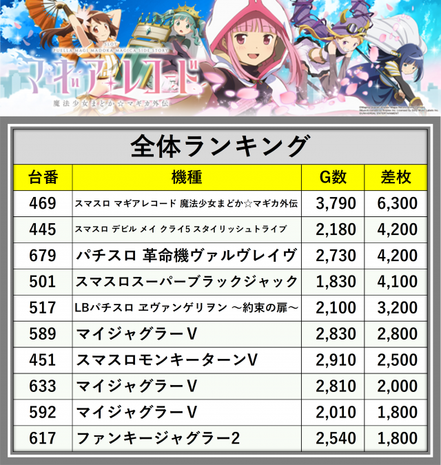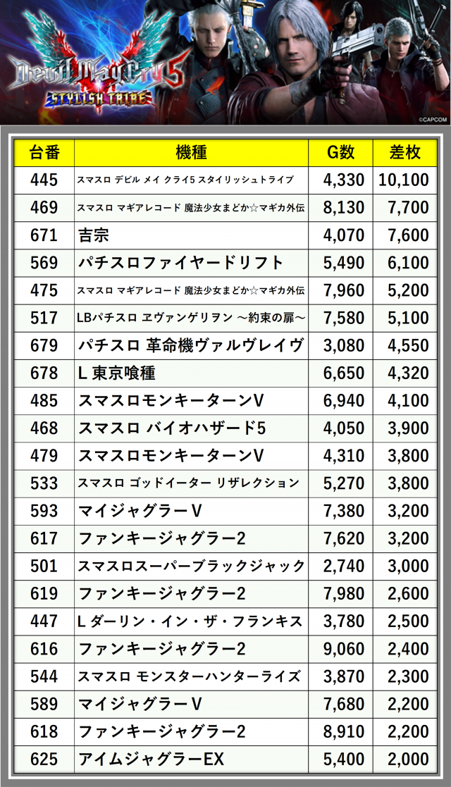 厳選された取材対象機種をはじめ、その他スロット全体から好記録が飛び出した!プレイヤーが楽しんだ1日を下記データにて振り返ってみて欲しい。