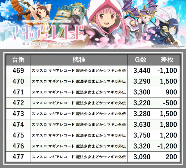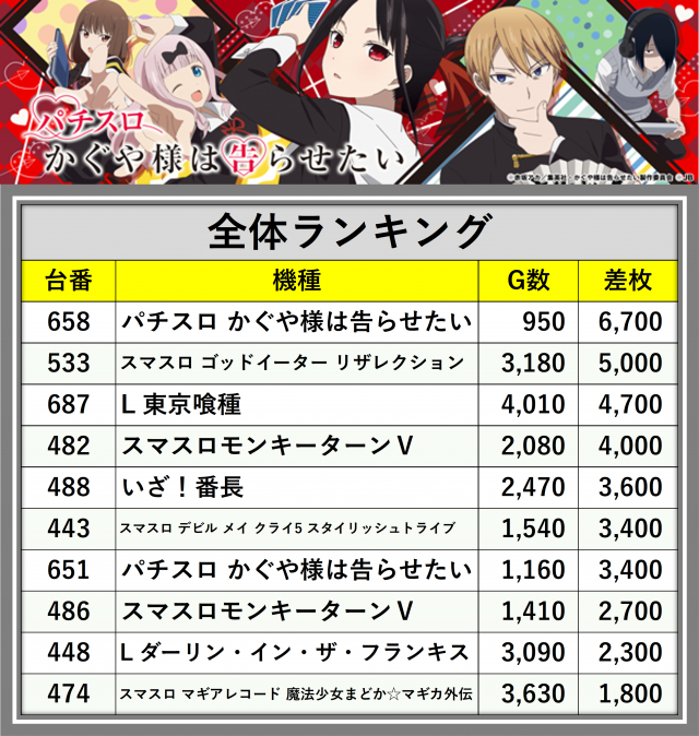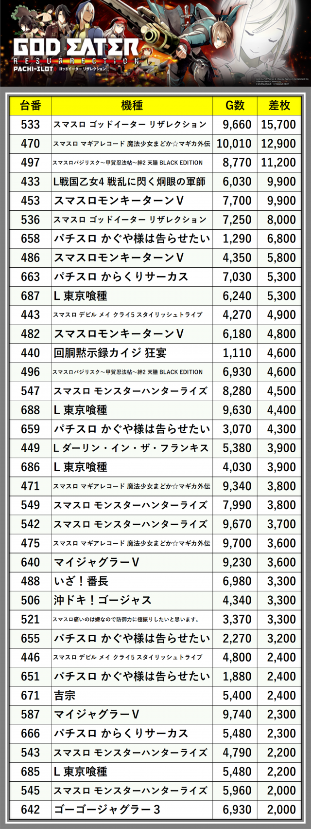 ※差枚数順に掲載しています