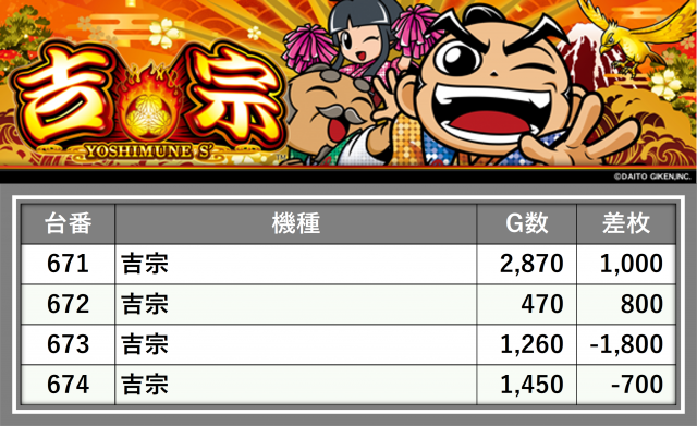 厳選された取材対象機種をはじめ、その他スロット全体から好記録が飛び出した!プレイヤーが楽しんだ1日を下記データにて振り返ってみて欲しい。