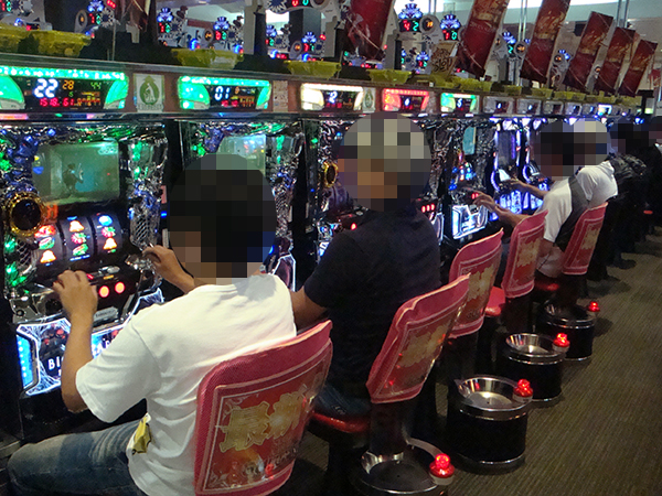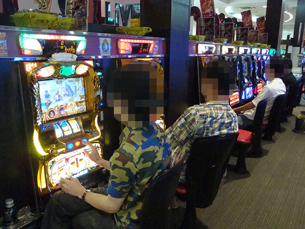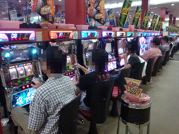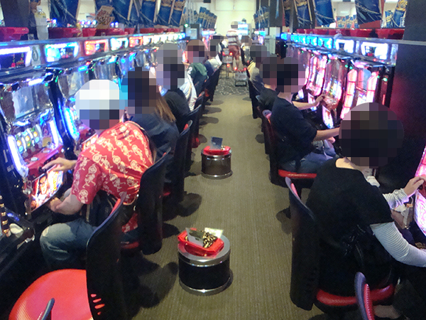 14時ごろの20円パチスロでは、「パチスロ バイオハザード リベレーションズ」や「政宗2」などが活況。シマ全体に広がる華やかな光景も印象的であった。