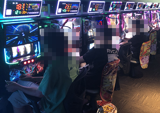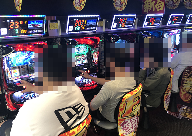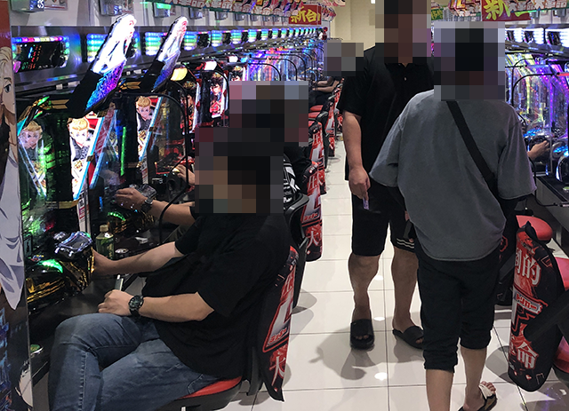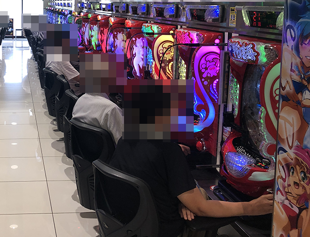 8月11日の店内では、さまざまな機種に笑顔で遊技をおこなっているプレイヤーの姿があった。