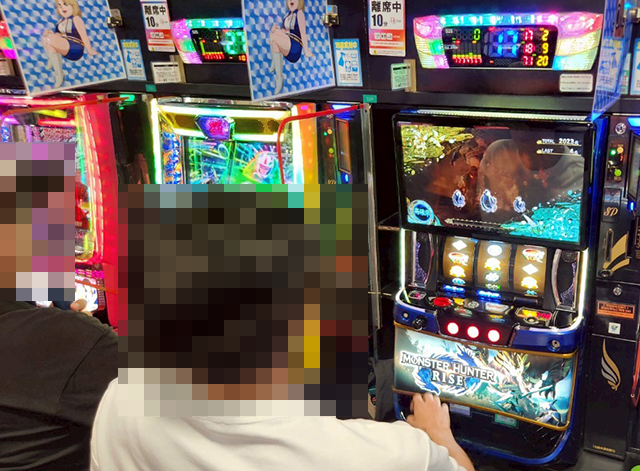 15時半ごろの「スマスロ モンスターハンターライズ」は満席に近く、2,000ptを超えている台もアリ。