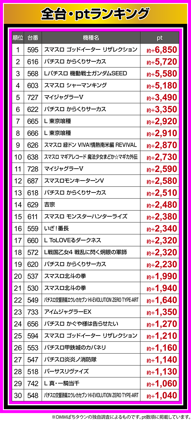 ※なお、本記事中のデータは全てDMMぱちタウンの独自調査によるものです