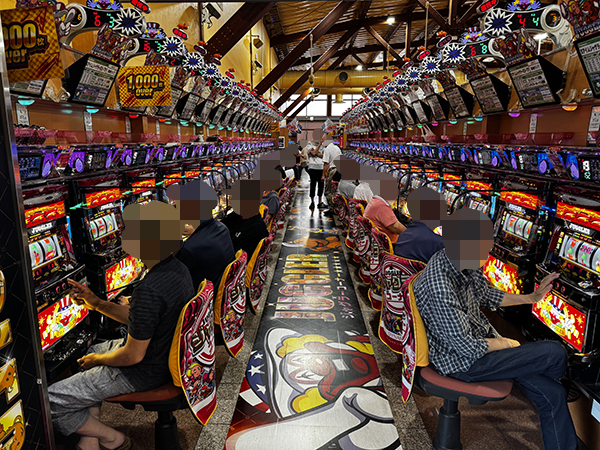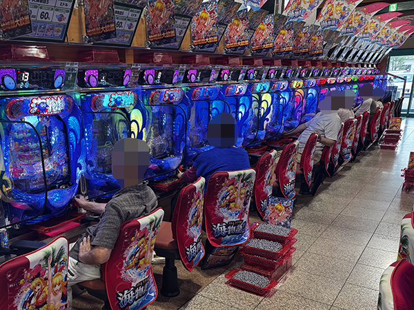 100円/89玉パチンコの支持も厚い。自社開発機を夢中で打ち込むプレイヤーたちの姿が印象に残っている。