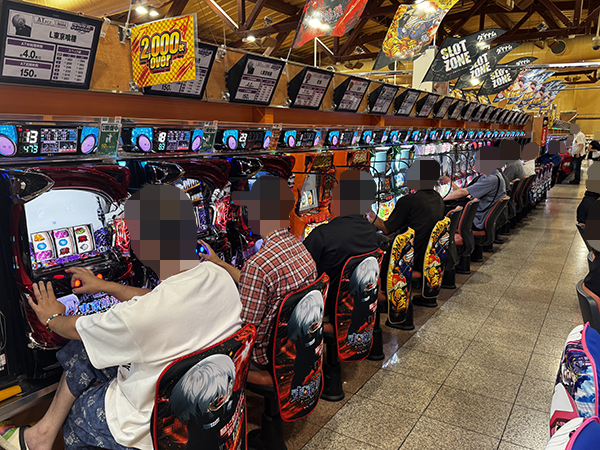 500円/89枚パチスロは全体的に高稼働。空き台が見当たらないほどの盛況ぶりだった。