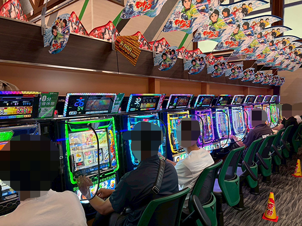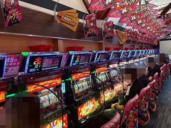 「アイムジャグラーEX」や「ゴーゴージャグラー3」、「沖ドキ!BLACK」などで機種性能を最大限に発揮するプレイヤーを確認。周囲から注目を集めていた。