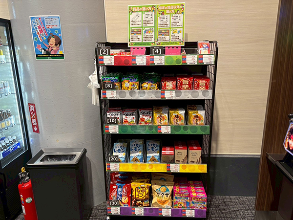 景品コーナーは豊富な品揃えで、お菓子やドリンク類など様々なアイテムが用意されていた。