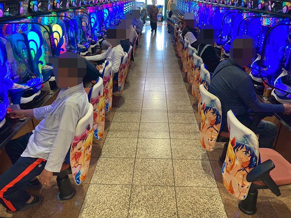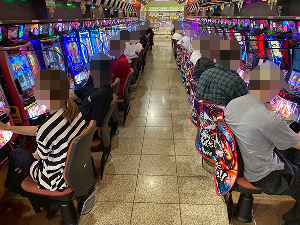取材時は既に多くのプレイヤーが集結し、パチンコ・パチスロを問わずにぎやかな状況となっていた。