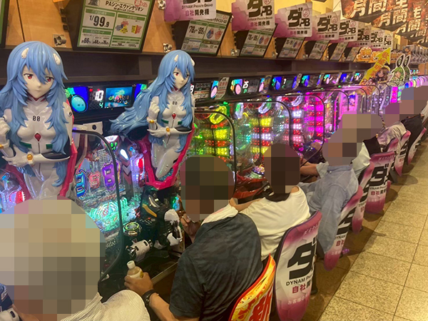 16時ごろの1円パチンコでは「PA大海物語4スペシャル Withアグネス・ラム」といった甘海シリーズや、「PAシン・エヴァンゲリオン 99 遊タイム付 ごらくver.」などの自社開発機で、プレイヤーたちの見事な活躍ぶりを目にしている。