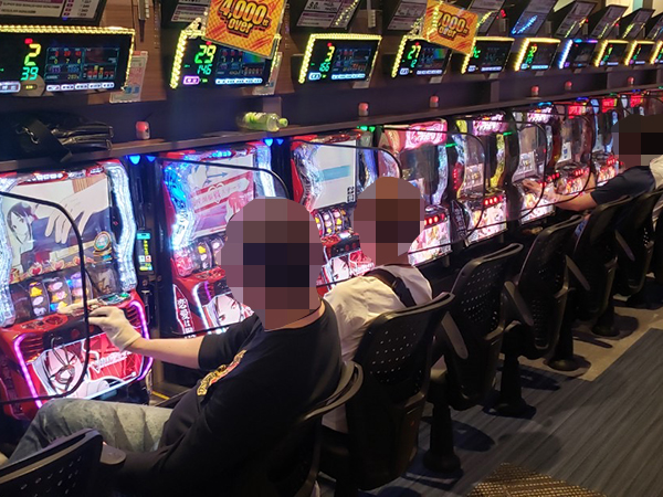 5円パチスロに目を移すと、楽しそうにレバーを叩くプレイヤーの姿が至る所で見られた。