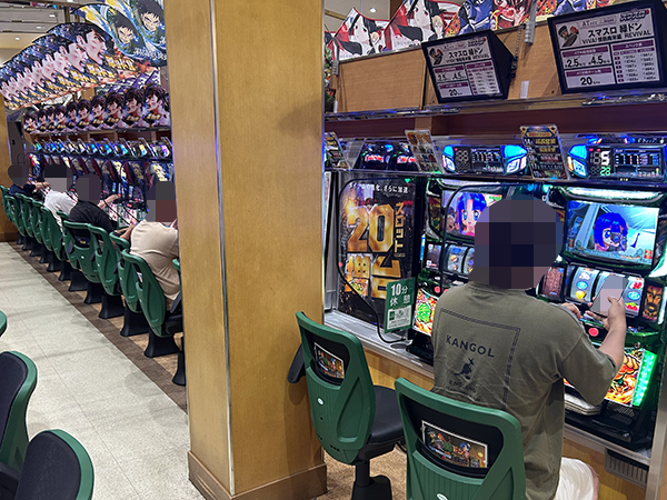 4円パチンコは「e 東京喰種」や「e東京リベンジャーズ」といったラッキートリガー機の支持が厚く、見事な活躍をするプレイヤーがあちこちで見られた。