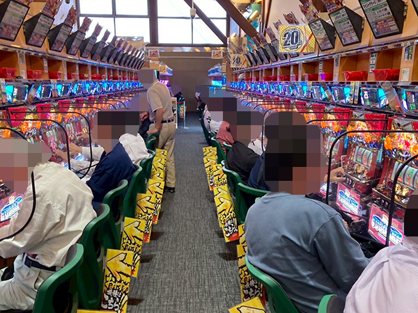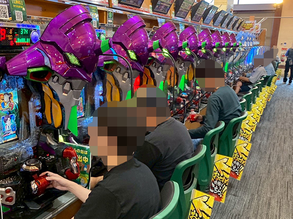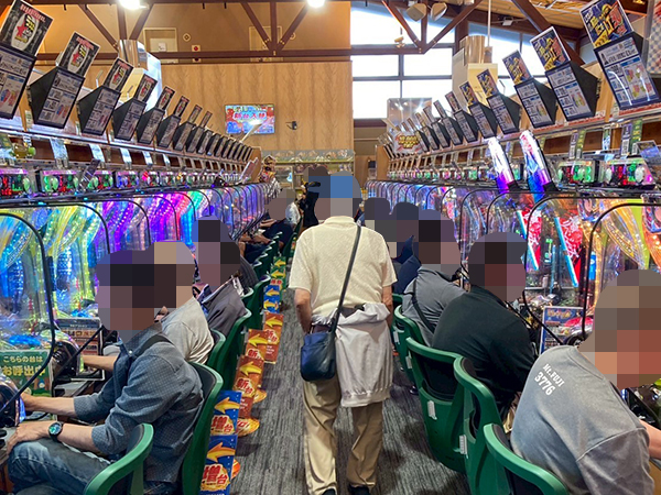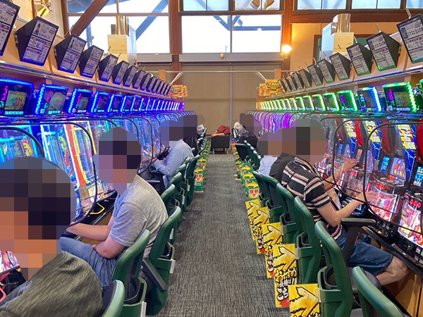取材時は既に多くのプレイヤーが集結し、パチンコ・パチスロを問わずにぎやかな状況となっていた。