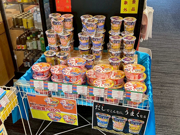 景品コーナーにはたくさんのインスタント食品やドリンク類が用意されており、プレイヤーから好評だった。