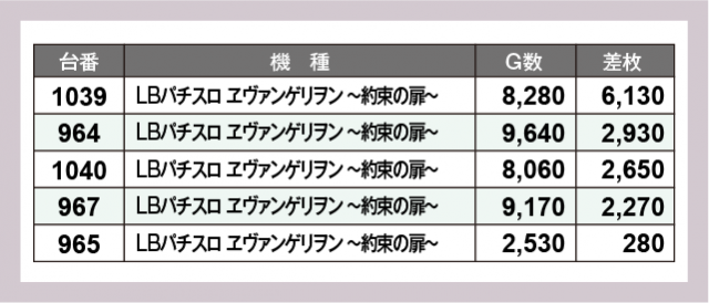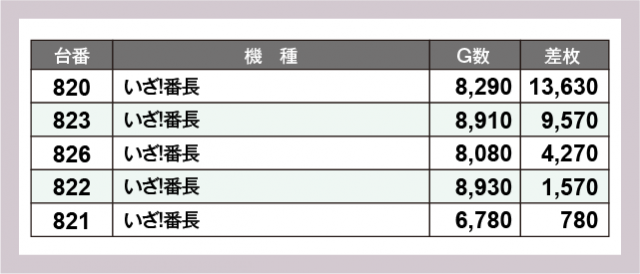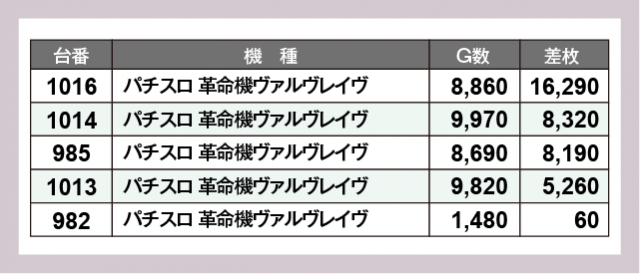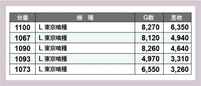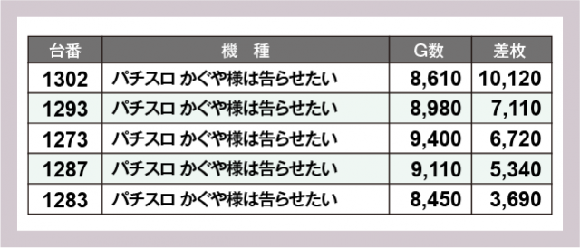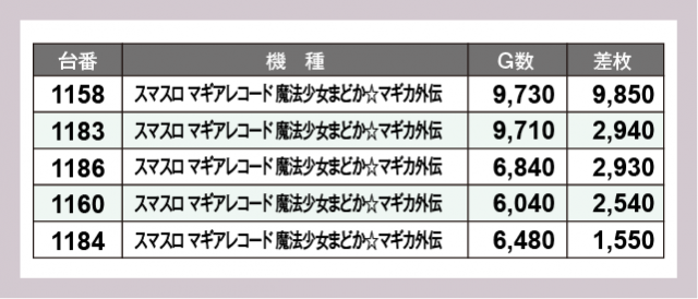 ※差枚数順に掲載しています