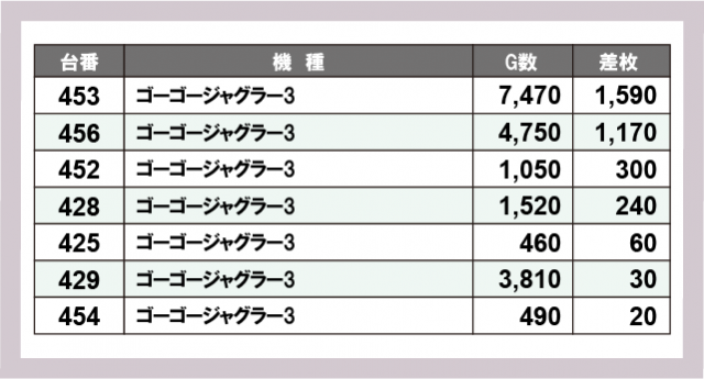 ※差枚数順に掲載しています