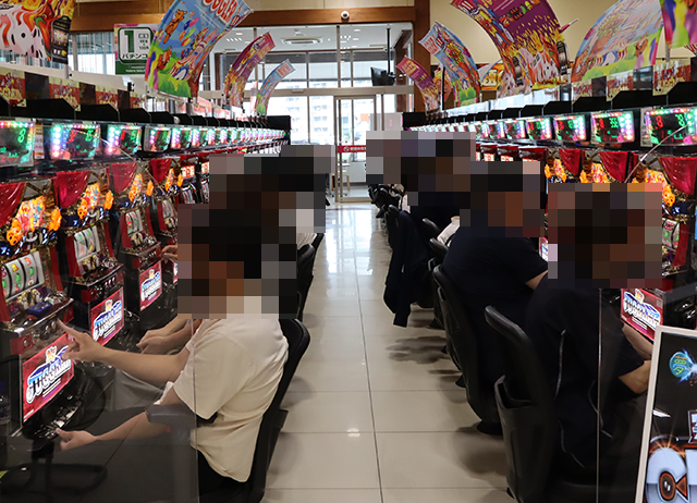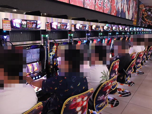 8月10日のホールでは、幅広い年代のプレイヤーが笑顔で遊技をおこなっていた。