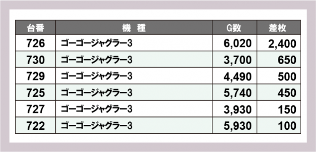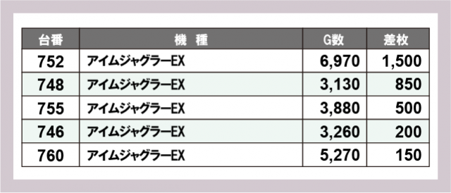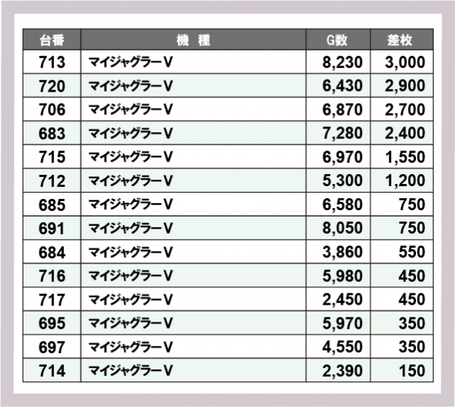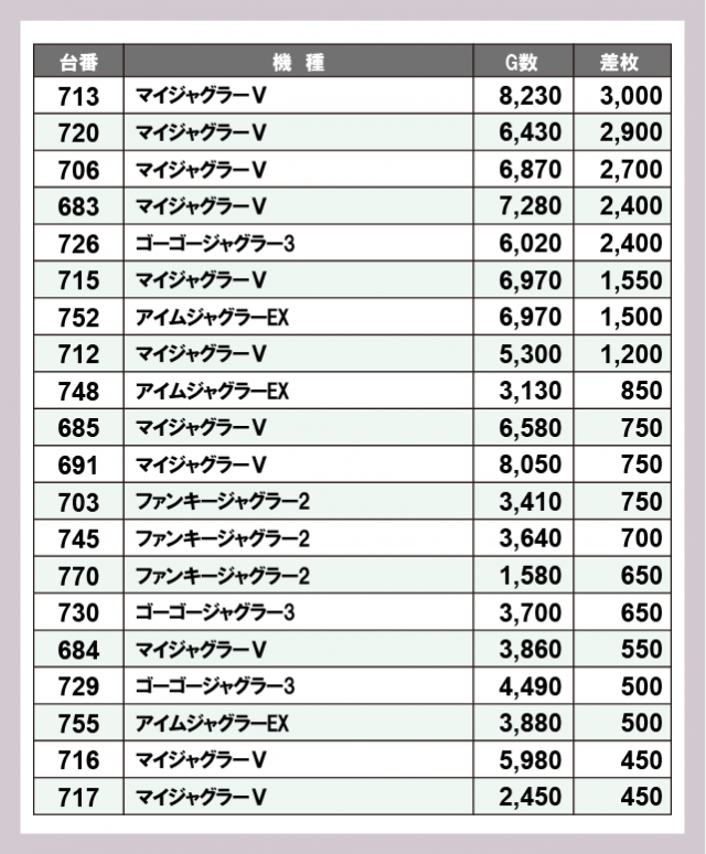 ジャグラー差枚ランキング