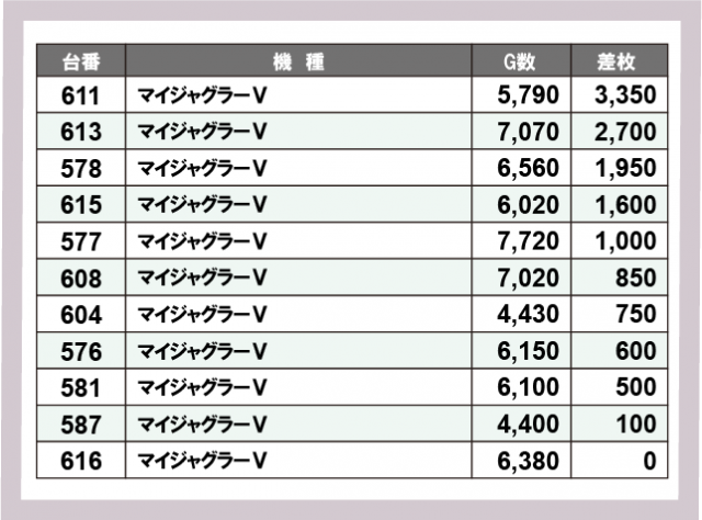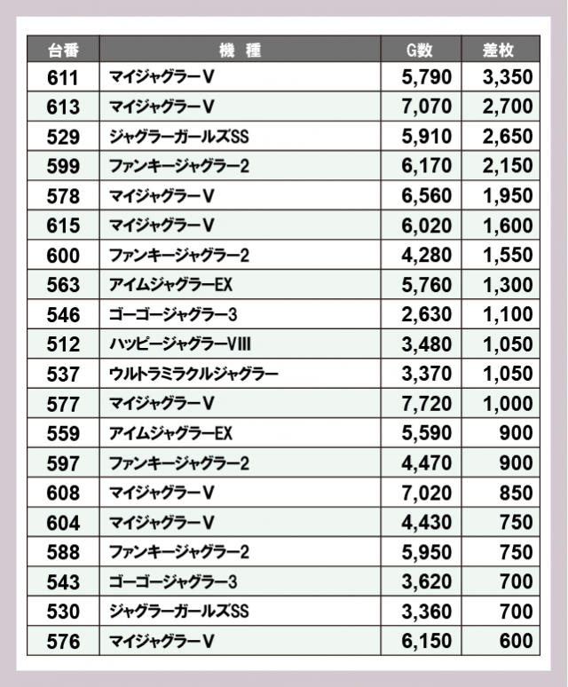 ジャグラー差枚ランキング