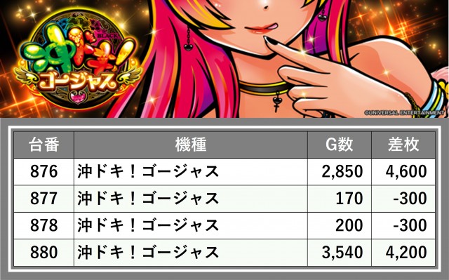 厳選された取材対象機種をはじめ、その他スロット全体から好記録が飛び出した!プレイヤーが楽しんだ1日を下記データにて振り返ってみて欲しい。